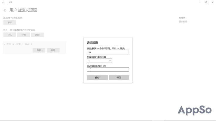 如果你不想局限于 Word,想在网页、微信等场合输入特殊字符的话,这种方法更为合适。以自带的「微软拼音」为例,进入「设置 – 时间和语言 – 区域和语言 – 语言选项 – 微软拼音选项 – 词库和自学习 – 输入法内置及用户自定义短语」,通过输入特定拼音,便可以将特殊字符显示于候选窗口,还可以设置在候选的位置。