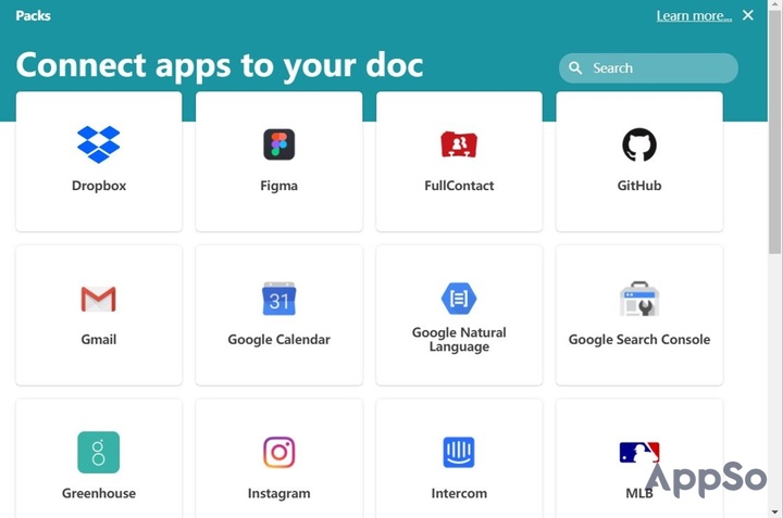 更具生产力的功能要数其自动化(Automation)和多应用协作功能(Packs)。自动化功能可以设置条件自动执行,比如项目修改了或过期了通知我。多应用协作功能使得《Coda》能与其他软件的服务集成,而无需用户知道 API 的调用,比如自动抓取 Instagram 或 YouTube 的视频,或进行推送通知等。