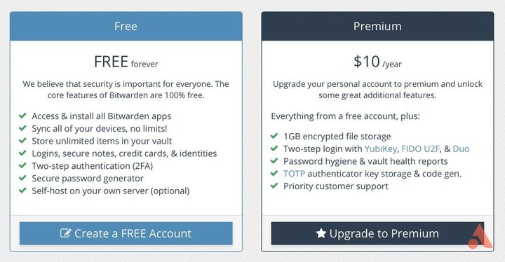 首先,从定价来看,除了傲娇的 1Password,其余软件都提供长期的免费使用。其中最良心的要数 Bitwarden、Keepass 和 LastPass 了吧,免费版就提供了不限数量的密码和设备,使你免去长期使用导致的焦虑。而其余的免费版或多或少对于存储空间或同步设备进行了限制,难以满足后期的需求增长。
