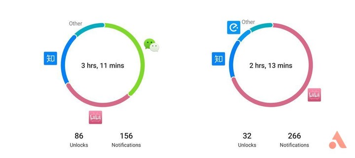 实验失败后,我比较了一下正常情况与实验当天手机的使用情况,可以发现,正常情况下手机使用时间为 3 个多小时,解锁屏幕 86 次,而实验当天手机使用时间仅为 2 个多小时,解锁屏幕仅 32 次。可见光少了微信一个 app,手机的功能似乎丧失了一半,导致我的手机使用频率也相对降低了。