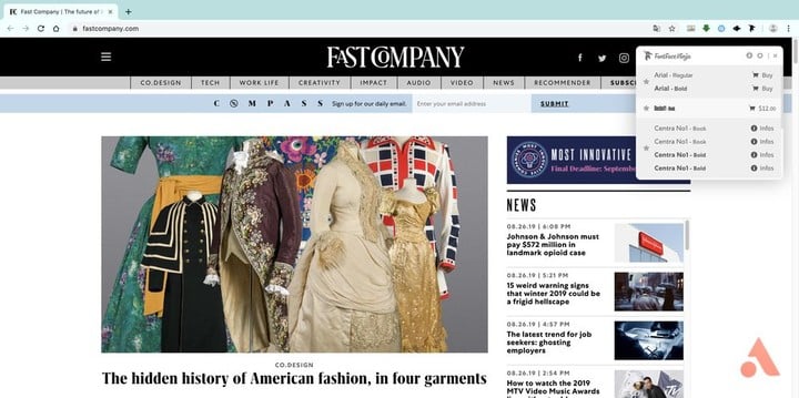 对于从事设计的人来说,总是希望从好的作品中汲取灵感。而字体是设计的重要一环,这时候,看见好看的字体总是希望知道字体名。Fontface Ninja 不仅可以列出当前页面中的所有字体,还可以链接至其字体网站显示具体的信息,包括是否免费商用和购买价格等等。