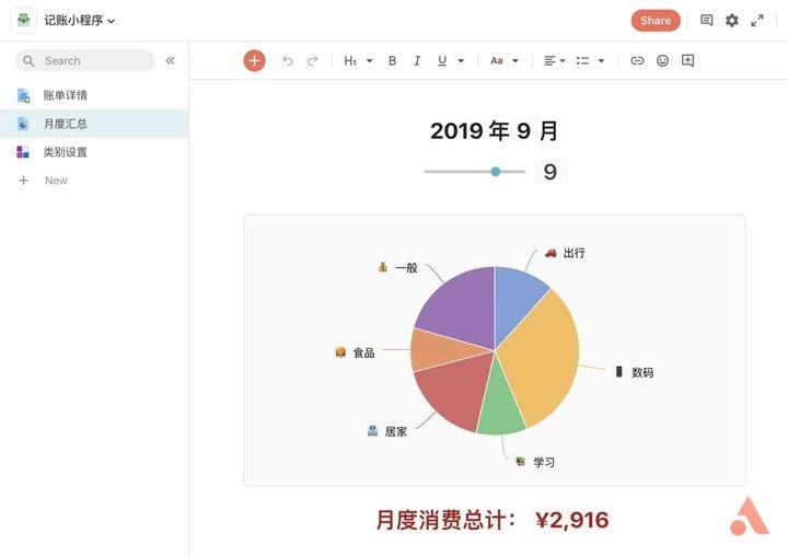 此类以数据库为依托的小程序,本质上是数据的记录与呈现,而 Coda 对于表格的重新定义,更加方便了我们对数据的筛选、加工与展现。