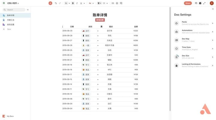 也许你没有听过 Coda,也懒得去翻前面的文章,那我就来简要总计一下什么是 Coda 吧。Coda 作为一款主打协作的云文档软件,要想在众多的同类产品中生存下去,必定需要核心功能,我认为 Coda 的核心功能可以定义为「像 App 一样的文档」。