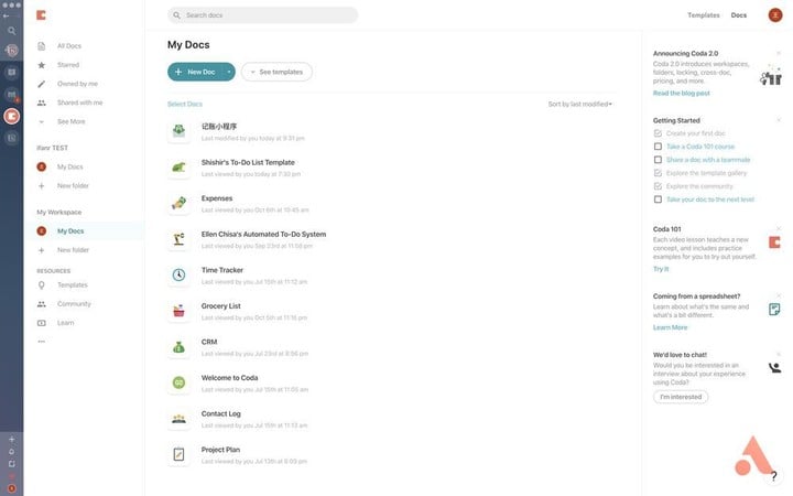 Coda 1.0 推出时,功能就已十分完善,甚至有人曾评论说「这不像是 1.0 的版本,更像是 5.0 或更高的版本」。的确,Coda 在 1.0 的版本便打下了丰富的功能基础,而此时发布的 2.0 则让这些功能更加泾渭分明,让团队的概念逐渐呈现了出来。