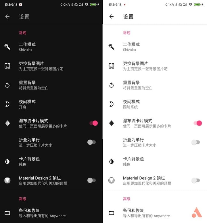 目前看来,《Anywhere-》的基础功能还是非常完善的,除了最基本的功能外,其 UI 界面的自定义程度也是相当高的,可以设置背景图片、设置夜间模式,还可以设置卡片展示的效果,让你不会因为其 UI 的丑陋而不情愿去使用。毕竟,好看也是能构成生产力的。