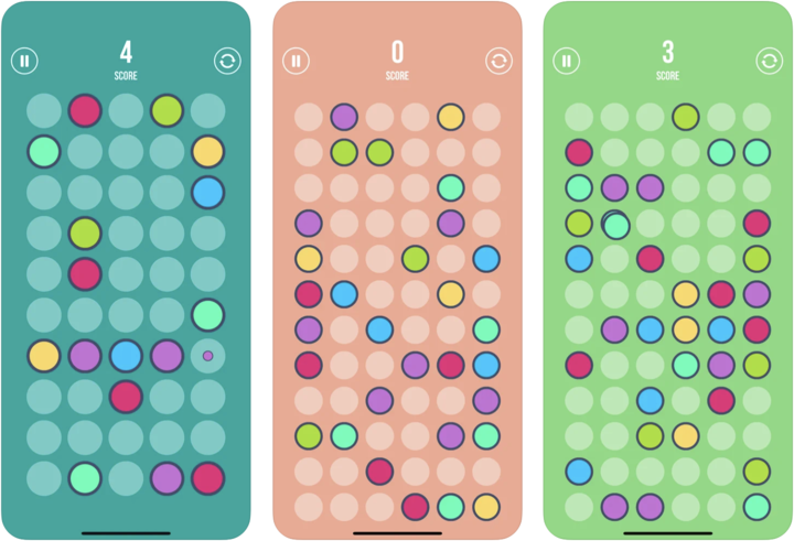 一款很简单的小游戏,你只需要将一个个圆圈拖放到另外一个相同颜色的圆圈,比如将左一的红色圆圈拖到另一个红色圆圈上。另外,它还有多款主题和游戏音乐,也适合闲暇一乐。