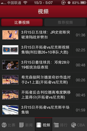 而除了“比赛”、“排行”以及“视频”以外,也可以通过“新闻”了解球队的最新动态。而关心 CBA 季后赛的球迷们来说,虎扑看球助手,也提供了相关的资讯。