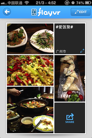 Flayvr 的自动拼图功能让人喜爱,每个“瓷片”隔一段时间就换一张照片,毫不呆板。而且这个电子相册还能够分享到社交网络,或者通过电子邮件分享给好朋友。打开 Flayvr 所分享的链接,即可见到动态的电子相册,十分方便。只可惜,Flayvr 尚不支持国内的社交网络。