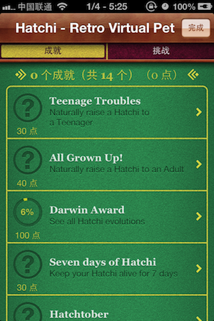 如果觉得光自己养宠物有些无聊,Hatchi 还可以通过 Game Center 向自己的好友发起挑战,看谁积累的积分多。