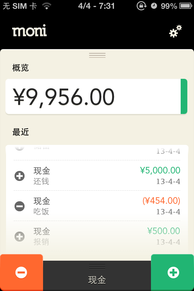 Moni 是一个非常简单的记账应用,它真正做到了,简单记录,方便查看的功能,而且界面简单,让人赏心悦目,乐于使用。