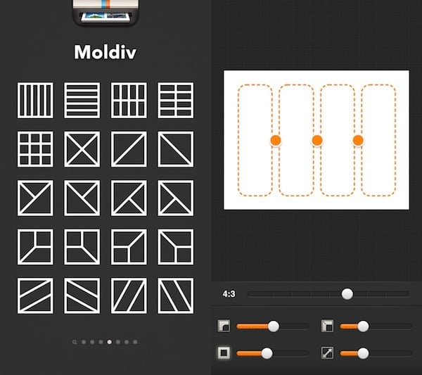 一张 PO 图的好感觉,首先来自构图。Moldiv 一口气免费提供了 80 款拼图模板,并且支持对框架样式微调。