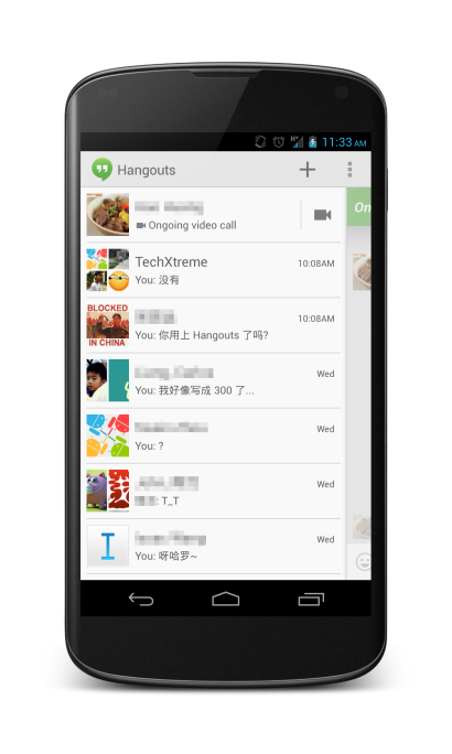 在看习惯微信、LINE、WhatsApp 等 IM 工具相对“臃肿”的界面后,Hangouts 充满“Google 气质”的简洁设计让我们眼前一亮。