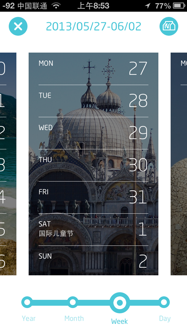 时光在前行,记忆却只能回溯。上滑打开 Calender 界面,就可以按年 / 月 / 周 / 日回放过去的“每一天”。