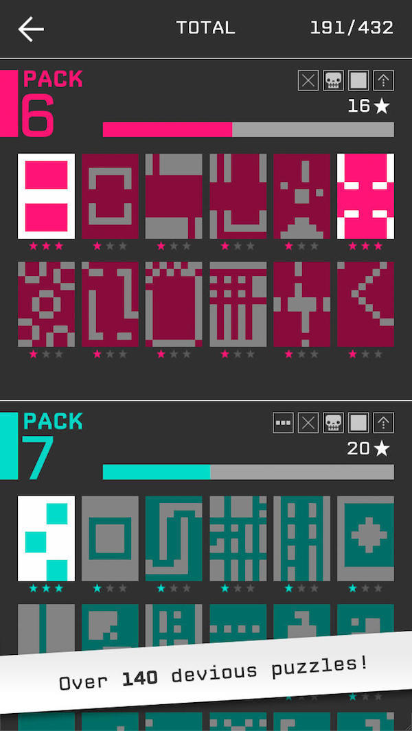 脉冲会被“墙壁”挡住,但在前两组大关卡里,可以通过长按砖片预览脉冲效果,珍惜每一次出手机会,一旦超过每关的次数上限还没有完成颜色覆盖即判定为输。
