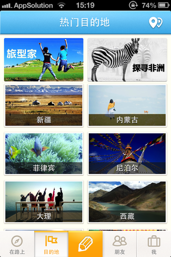 如果你想要看特定地点的游记,直接“目的地”里寻找就可以了。