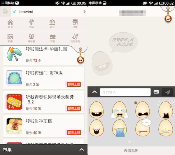 此外,呼啦 2.0 还引入了一个全局开始按钮以及表情贴图。全局按钮极大提高了该 App 的易用性,丰富的表情贴图则能让朋友间的聊天更富乐趣。