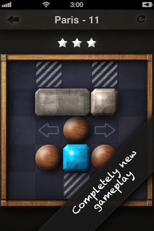 以棋盘为背景,设计精美的益智游戏。通过移动棋盘,将棋子送到指定的位置即可过关。玩法非常有特色,强烈推荐。