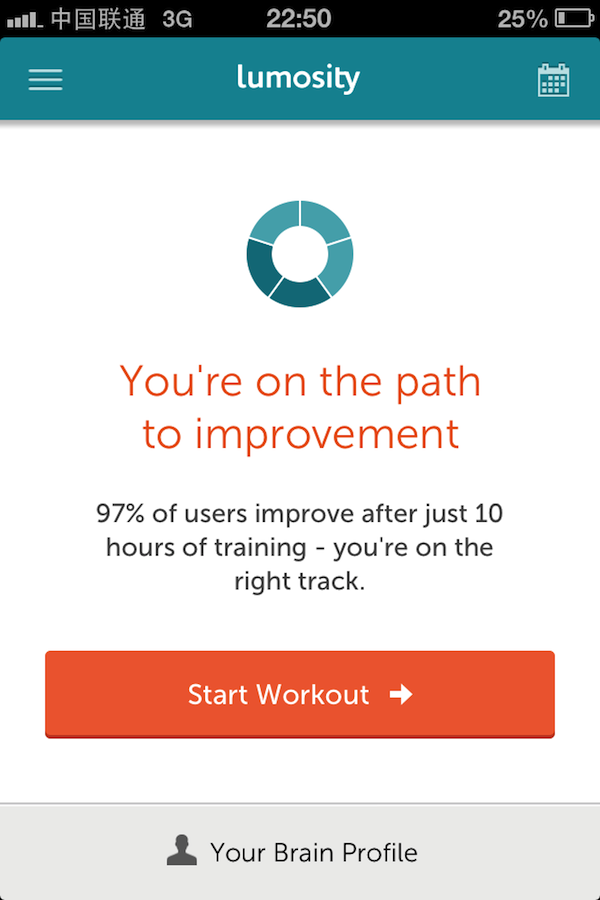 Lumosity 建议每周完成 3-4 次训练,其中,每天只需训练一次。
