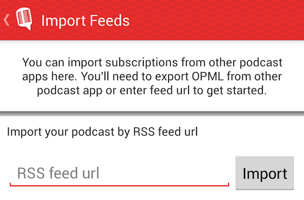 如果在节目列表中没有找到自己喜欢的(比如大部分的中文 Podcast),Player FM 还支持通过 RSS 地址订阅和通过 OPML 文件导入。通常这些地址都可以在 Podcast 发布者处获得。
