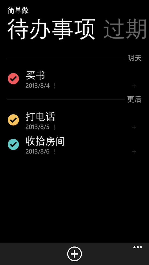 今天给大家推荐的 WP 应用名字叫 Simple Do。它是 Windows Phone 上一款简单好用的待办事项应用。它充分利用了 Live Tiles 和锁屏通知等特性,让你不错过每一项任务。