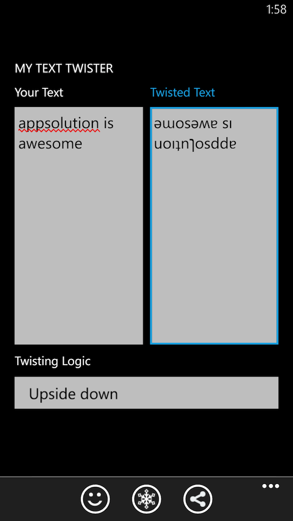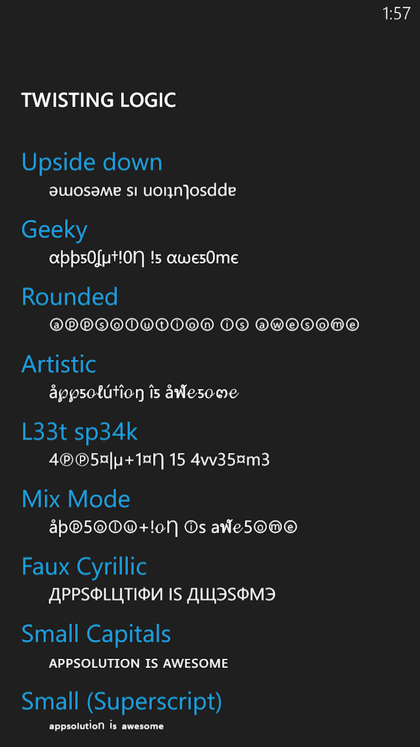 MyTextTwister 适用于 WP 7.5 及以上系统,大小 1MB,免费,有不影响使用的广告条。