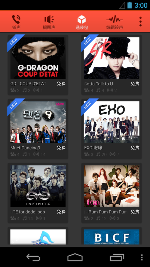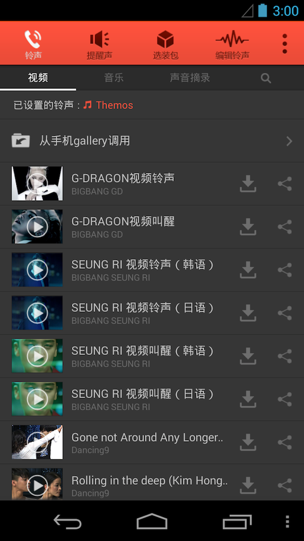 Dodol Pop 的铃音库中大部分都是韩国明星的声音和视频片段。如果不喜欢,还可以调用你手机中现成的视频和录音,自己制作专属的那款。