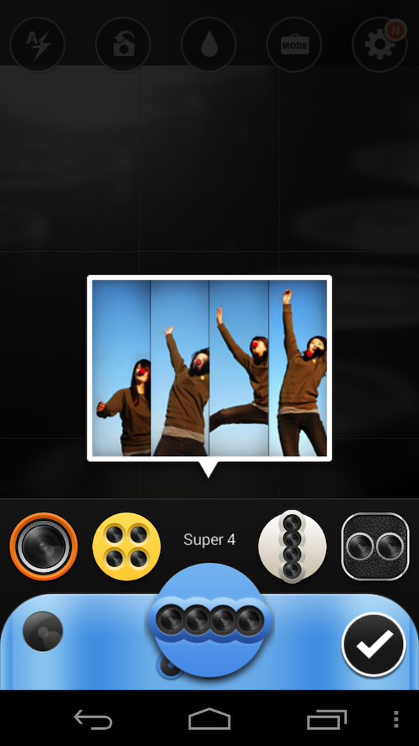 先来试试拍照。Cymera 提供的丰富选项弥补了 Android 相机简陋的功能。