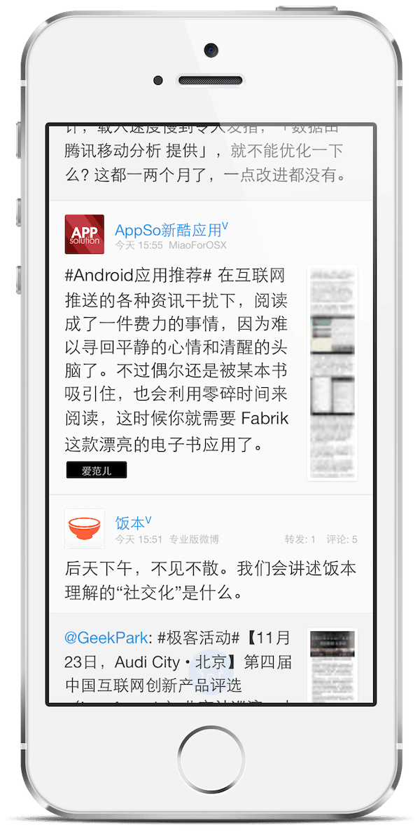 在 iOS7 之前的时代,我们已经看到许多优秀的 iOS 微博客户端,比如 Weico,随享,墨客等等。