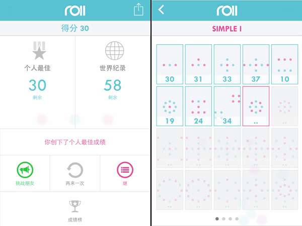 游戏有很多很多关,很多很多奇妙的图案。你能看到自己的最好成绩,以及每一关的世界纪录。相信我,你会玩越蛋疼,但一整天不知不觉就「滚」过去啦。