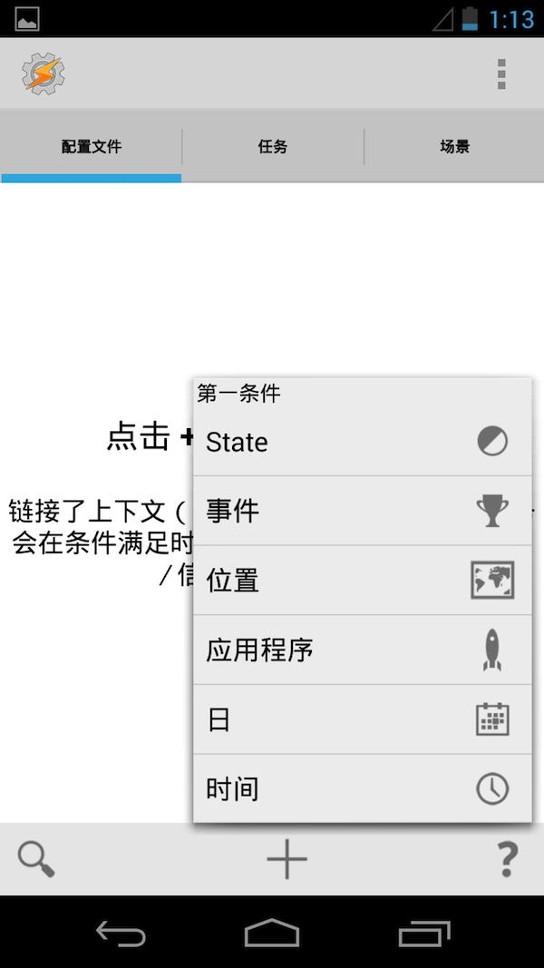 首先设定触发条件。Tasker 提供的选项多到你无法想象。