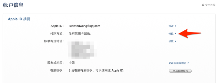 2. 找到付款方式(Payment Method),点击「修改」。
