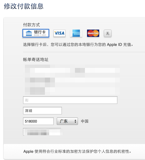 5. 如果你选择了「信用卡」,填写卡号、有效日期、安全码(一般在信用卡背面)以及账单地址,只要信息准确无误一般可以授权成功。以后购买应用只需要输入 Apple ID 密码就可以轻松购买了。