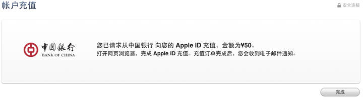 4. 如果你选择了「银行卡」点击「继续」后选择充值金额以及银行,最后跳转至浏览器用网银付款即可。充值成功后会有邮件通知,需要等待一小段时间。