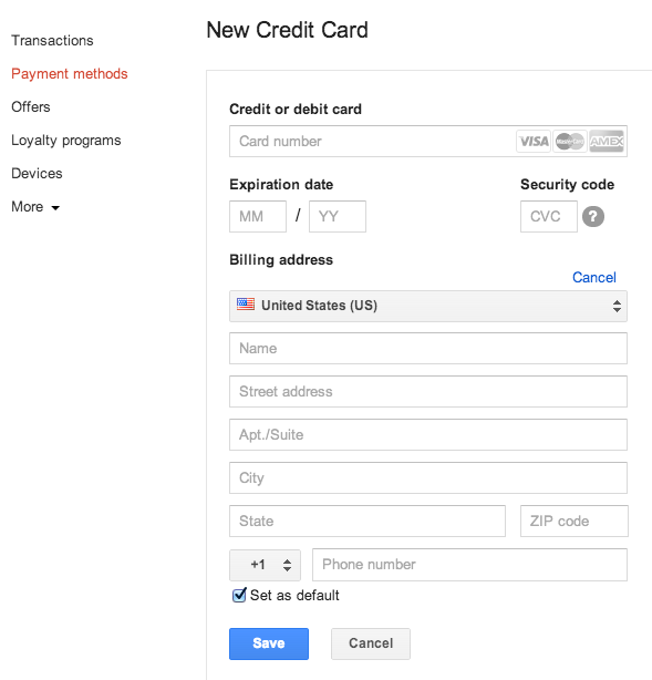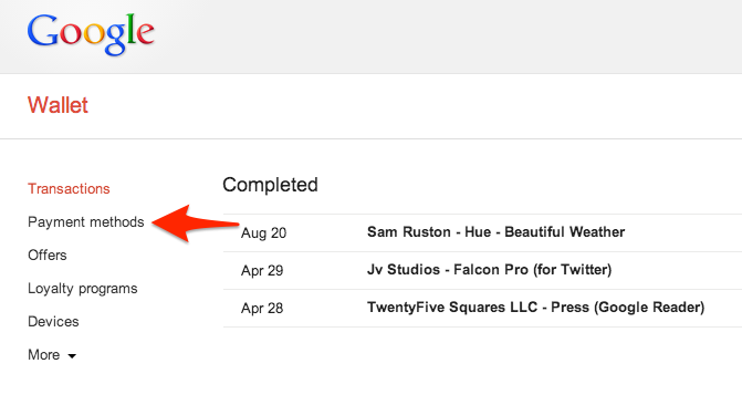 1. 用浏览器打开 http://wallet.google.com,登录 Google 帐号,找到左侧栏的 「Payment methods」。