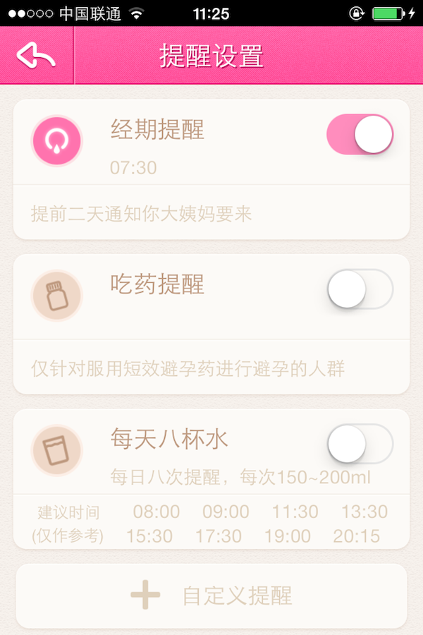 根据身体的状况,也别忘了适时记上一笔,让「大姨吗」跟上你的变化。