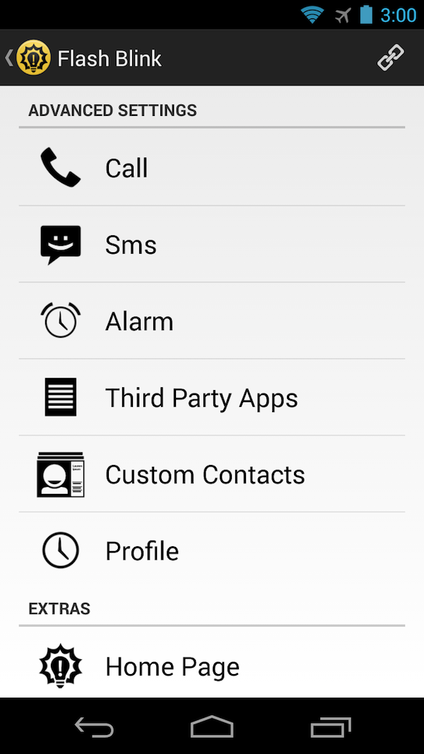 这时你就会发现,Flash Blink 可不只是一个简单的手电筒。它会将手机背面的闪光灯变成一个更大的 LED,当你觉得正面的小灯不足以引起你的注意,或是某个常用的 App 在推送通知的同时不能够自动点亮 LED 灯,它就会派上用场啦。