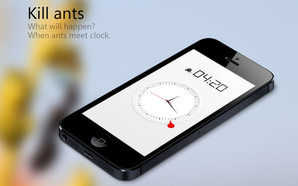 Kill Ants 是一款超简单的 iOS 闹钟 App。睡前用指针设定闹钟时间,按下闹铃时间旁边的蚂蚁,可以以 5 分钟为单位调整时间。