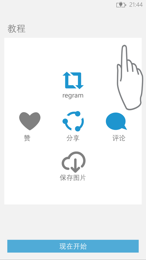 6tag 集成了多种手势操作。其中,“regram”和保存图片两大功能是官方客户端所不可能拥有的,也自然成为了 6tag 的杀手锏。