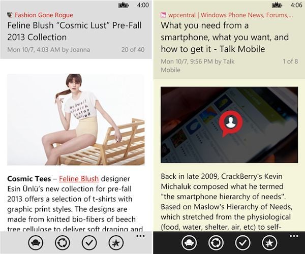 Nextgen Reader 是 Windows Phone 平台上的优质 RSS 阅读器代表,完全按照 WP 的 Modern 风格设计。