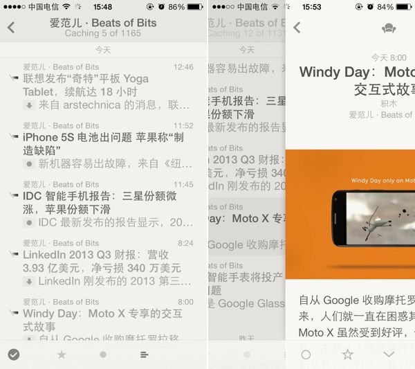 上个月 Silvio Rizzi 推出了专为 iOS7 重新设计的 Reeder 2。Reeder 2 的设计仍旧继承了 Reeder 一代的简洁、素雅,曾经有立体感的顶部导航条被拍扁,跟 iOS 的状态栏融为一体,非常好看。