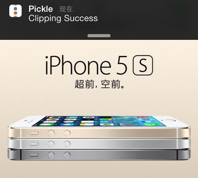 任意复制一张图片或截图,Pickle 就会弹出通知,告诉你收藏完毕。如果复制一个链接,Pickle 甚至可以自动收藏网页中的所有图片。