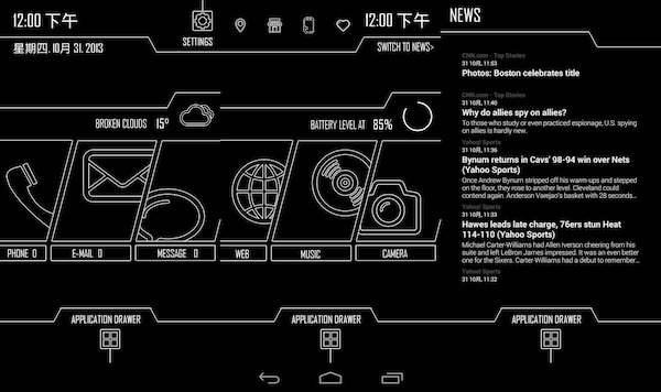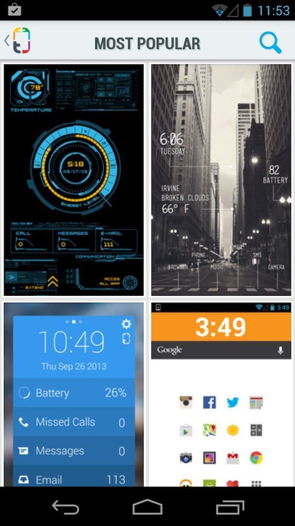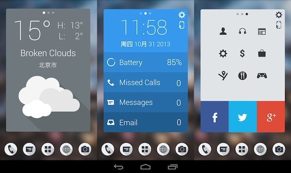 Themer 的每款主题都经过精心的设计,不仅运用丰富的色彩和简洁的图形,也包含了天气、音乐控件和 RSS 订阅源等工具。