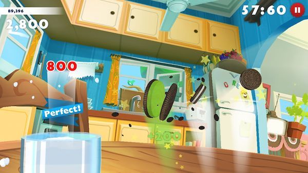 开始游戏之后,屏幕下方会不断飞出奥利奥。