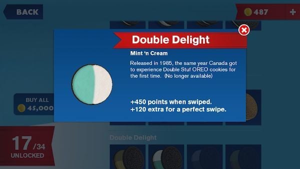 毕竟游戏本身就是个大大的广告,所以,奥利奥放进了一张精美的图鉴,告诉你所有正在售卖或曾经上架的奥利奥产品。对了,图鉴还会告诉你划过每种饼干时会得到的分数。