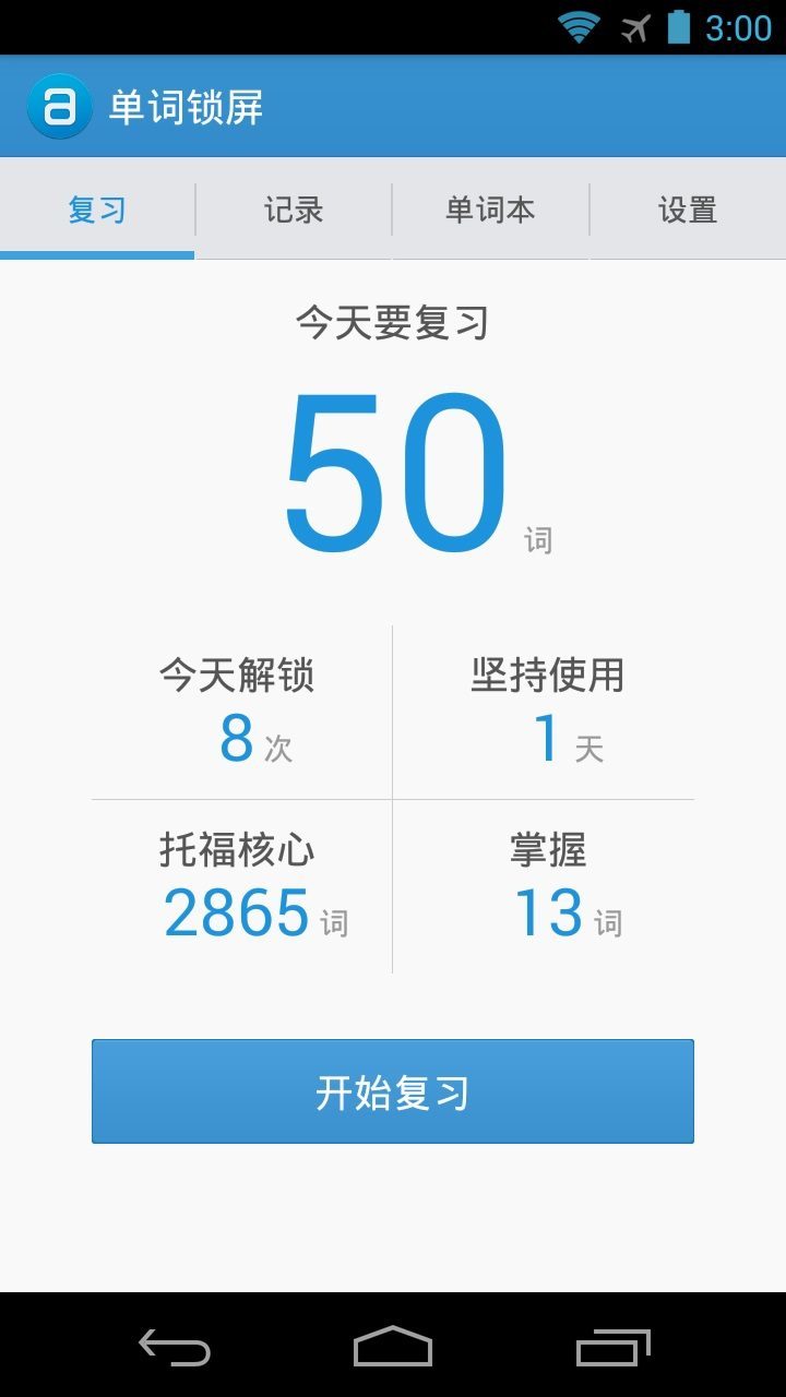 单词锁屏大小 2.6MB,适用于 Android 1.6+,完全免费。