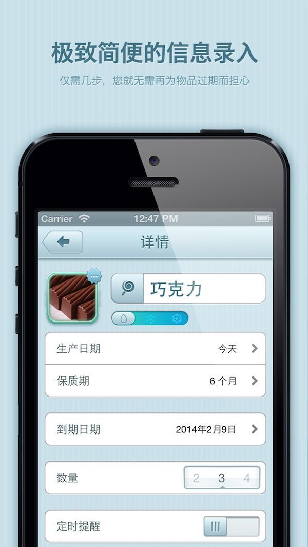 在我们眼里基本没有同类的 App,虽然 App Store 上面也有几个关于“保质期提醒”这样的 App,但是同我们的设计、功能、细节相比都是与我们差很远的产品,所以我们眼里没有同类应用和竞争对手。