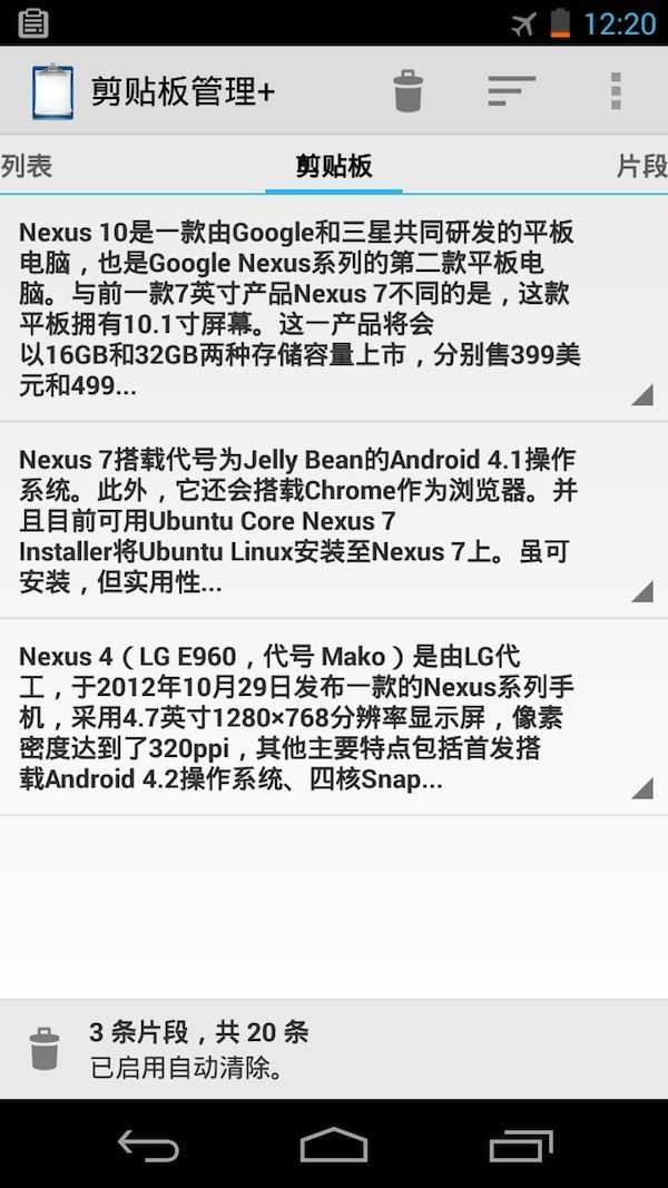 上帝说要有 Clipper,所以 Clipper 来啦。它是 Android 平台一款超强的剪贴板增强工具,可以同时记录 20 条复制的历史,并且随时供你方便地到处粘贴。