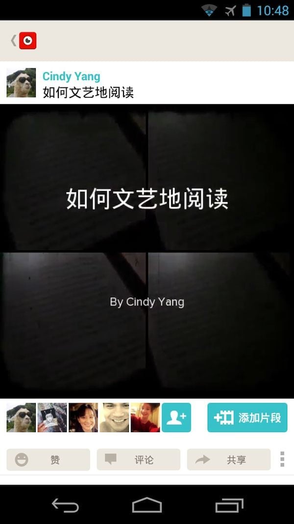 然后,告诉你的朋友们。大家收到邀请之后,便可加入你的工程。完成之后,他们的头像就会成为视频的注脚。