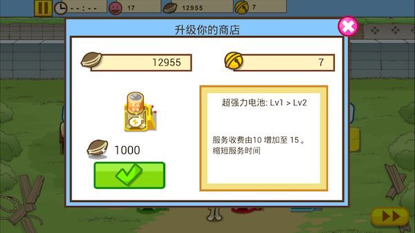玩了二十几关,感觉这个游戏最重要的就是「时间管理」,如何充分利用好每一个时间空档是关键。另外,每天赚铜锣烧用来扩展店面,还是相当有乐趣的。不过比较坑的一点是,游戏后期升级都需要铃铛,选择花钱还是选择角子机,就看你了……