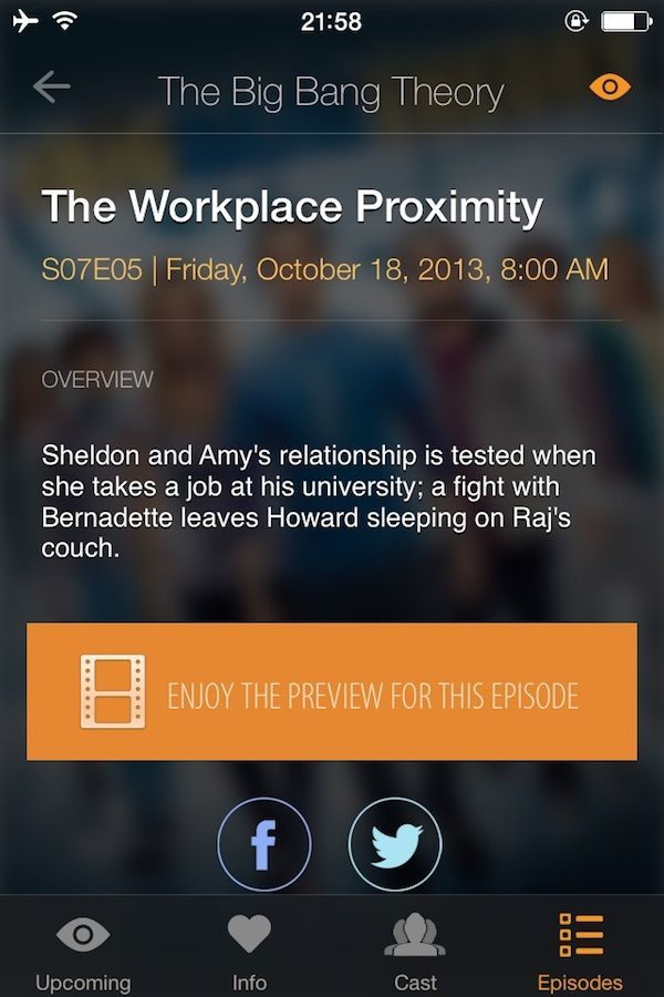 在进入应用时添加你正在看的剧目,TeeVee 2 会自动将你的设置与 iCloud 同步。你甚至中找到一些中国播的电视剧,比如《舌尖上的中国》,虽然它的状态已经是”Dead”……